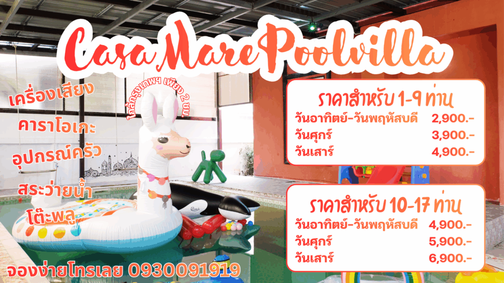 CASA MARE PoolVilla @เพชรบุรี พูลวิลล่าสไตล์ “โมร็อคโคริมทะเล” ที่พร้อมพาคุณหลุดเข้าไปในบรรยากาศอาหรับเหนือสุดมีเสน่ห์ ทุกมุมของบ้านถูกแต่งด้วยโทนส้มดินเผา น้ำตาลทราย และลวดลายเรขาคณิต ทำให้ที่นี่โดดเด่นและแตกต่าง เหมาะสำหรับคนที่ต้องการ พูลวิลล่าใกล้ทะเลเพชรบุรี ที่สวย มีสไตล์ และเป็นส่วนตัวจริง ๆ พักผ่อนช้า ๆ จิบกาแฟรับแดดยามเช้า หรือจัดปาร์ตี้ริมสระแบบ Night Arabian ก็ทำได้ครบในหลังเดียว เดินทางสะดวก ขับรถแค่ประมาณ 1 ชั่วโมง 30 นาทีจากกรุงเทพฯ ทำให้คาซ่ามาเร่เป็นหนึ่งในตัวเลือกยอดนิยมสำหรับคนที่มองหา พูลวิลล่าใกล้กรุงเทพ ที่มาแล้วได้ทั้งความชิล ความสนุก และความสะดวกครบครัน อยู่ใกล้ร้านสะดวกซื้อ 7-11 ร้านอาหารทะเลสด และมีที่จอดรถภายในบ้าน ปลอดภัยเหมาะกับทั้งครอบครัว คู่รัก และกลุ่มเพื่อนที่อยากมาพักผ่อนแบบส่วนตัวสุด ๆ